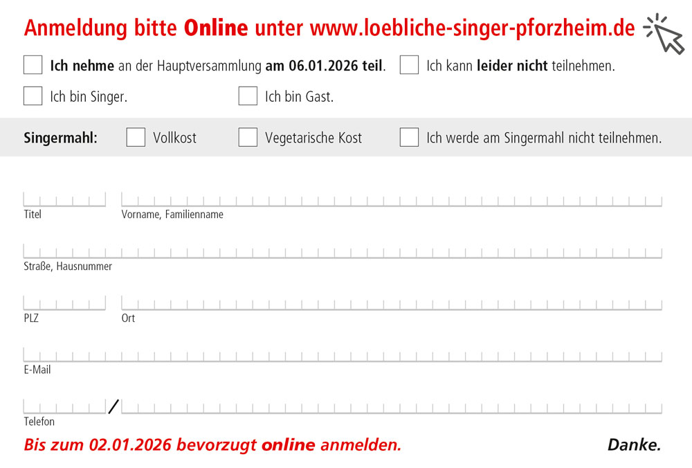 Die traditionelle Hauptversammlung der löblichen Singergesellschaft von 1501 Pforzheim 2026.