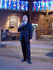 Das Foto links zeigt den Altarraum – das Fotos rechts zeigt den Löblichen Singer und Kantor der Johannesgemeinde bei seinem Vortrag zur Walcker-Popp-Orgel, die er anschließend erklingen ließ…